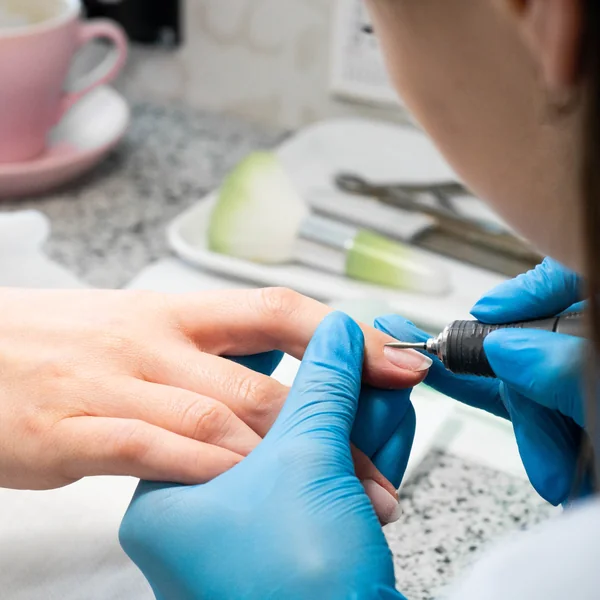 Rimozione Meccanica (Fresa): Utilizziamo punte specifiche di alta qualità e calibriamo i giri della fresa per rimuovere il grosso del prodotto senza mai toccare o surriscaldare l’unghia naturale sottostante.